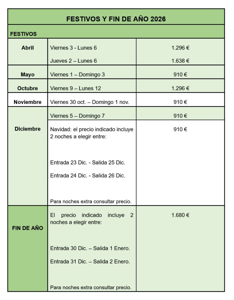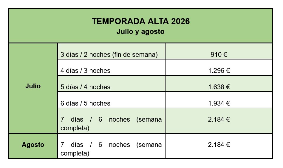 3- Temporada alta, con piscina (julio y agosto) 2026.